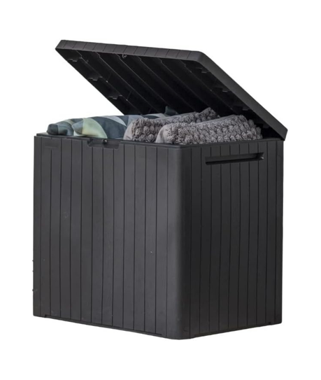 Keter City 30 Gallon Resin Outdoor Storage Box and Patio Furniture